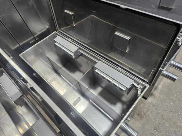 Реализован единый герметичный объем с разделением на 4 отсека. Это конструктивное решение предотвращает цепную реакцию и теплопередачу между группами аккумуляторов при аварии в одной из ячеек.